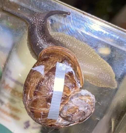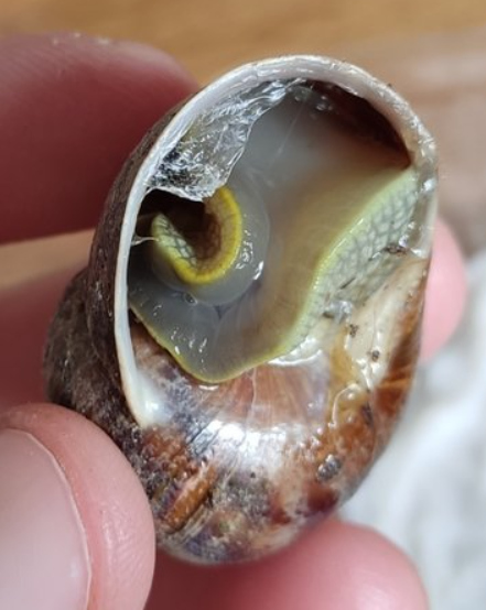 Dieses Schneckchen (im folgenden als 2A betitelt) wurde mit kaputten Gehäuse aufgefunden.