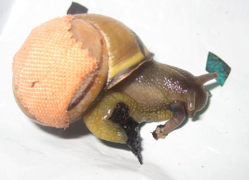 So vor drei Tagen entdeckte ich an meiner kränkelnden Schnecke dann am Fuß hinten links einen komischen gelben Fleck. Da kam so eine gelbliche Flüssigkeit raus. Auf der gegenüberliegenden Seite am Fuß sah das ähnlich aus, ... sehr merkwürdig.