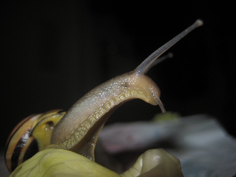 Die Fühler streckt er schon gar nicht mehr richtig aus, bewegt sich extrem langsam und die wenn man vorsichtig anfäßt, wirkt er auch irgendwie trockner als normal, als ob die Schleimproduktion nicht mehr richtig funktioniert.Dem Anschein nach hat er die letzten Tage aber noch gefressen, aber da ich noch ein zweites Schnecklein habe, kann ich das nicht genau zuordnen, von wem dann wirklich die Überreste stammen.