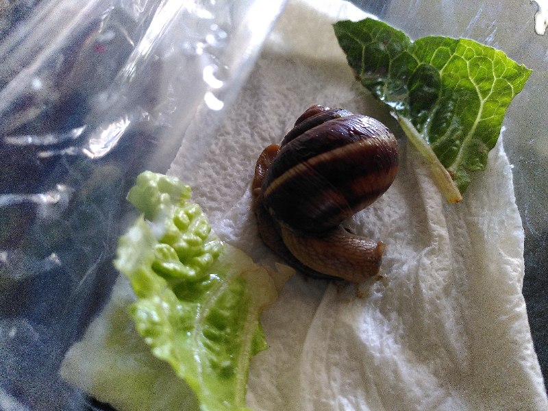 Normal bekommen sie Zucchini, Süßkartoffel, verschiedene Salate (diese Woche Romana-Salatherzen), Möhren, Brokkoli, selten Gurke (weiß ich nicht, ob es die diese Woche gab, kann sein). Meine Bänderschnecken haben exakt dasselbe bekommen, denen geht es allen gut.