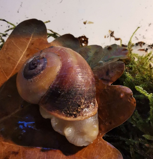 Ich habe die Schnecke in eine kleine Box mit Moos auf ein Blatt gelegt. Für den Fall, dass sie doch Kontakt mit einer schädlichen Substanz hatte, habe ich ihr ein Heilerdebad gemacht und sie etwa 2 Minuten drin liegen gehabt.