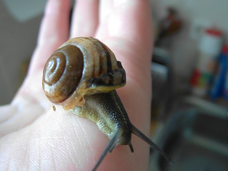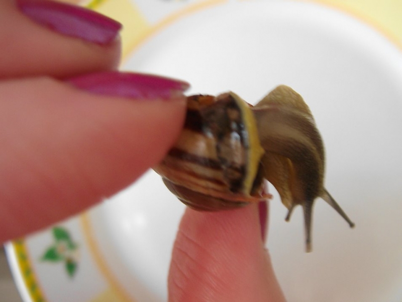 habe heute nach dem Regen ein wenig nach Schnecken Ausschau gehalten und dabei einen kleinen Patienten entdeckt und mitgenommen... okay, eigentlich 2, aber Nr 2 scheint gut im Reparieren zu sein... Nun weiß ich nicht recht, wie ich mit Nr. 1 fortfahren soll..