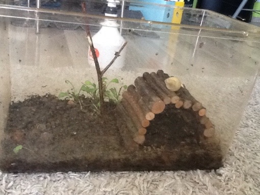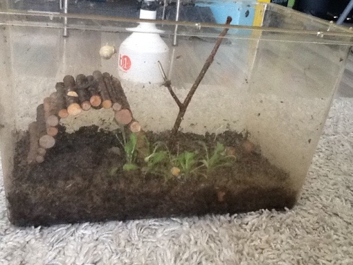 Ich hatte mal Schnecken über Winter, Bänderschnecken. Ich habe sie aus Versehen an Brombeerästen für meine Stabschrecken im Winter in die Wohnung geholt und damit versehentlich aus dem Winterschlaf gerissen. Also habe ich ihnen ein Faunarium eingerichtet und sie im Frühjahr wieder dorthin gebracht, wo ich sie geholt habe. Das Faunarium war so voll mit Pflanzen, Kork und Ästen, dass ich die Schnecken gar nicht zu Gesicht bekommen habe. Und so soll das auch sein!