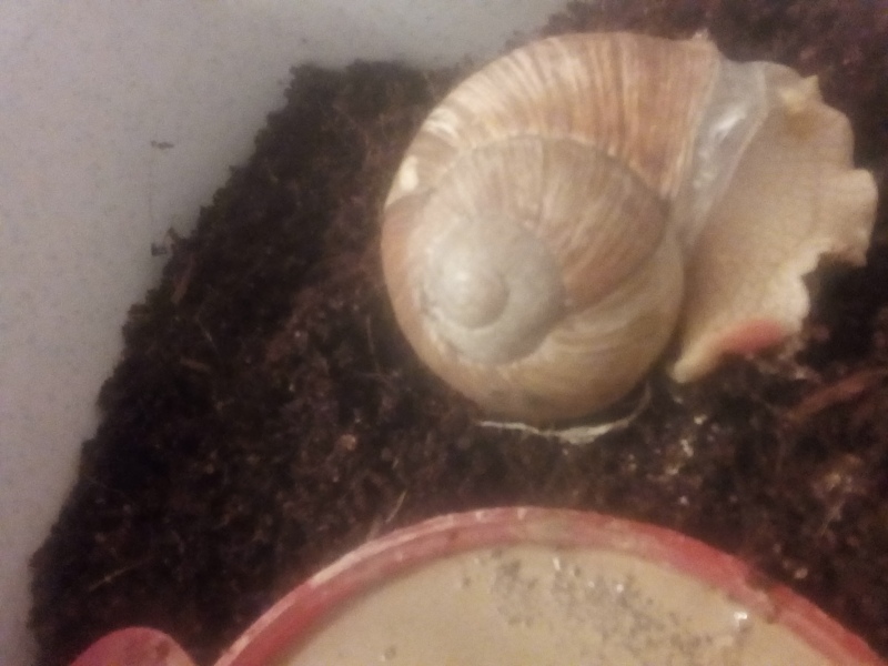 eine meiner Weinbergschnecken hat geruht und ist jetzt wieder aus dem Haus gekommen.
