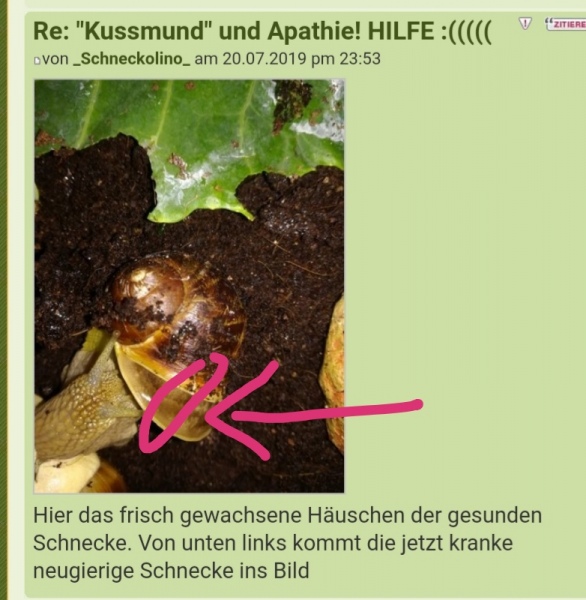 Wenn die Fühler rauskommen wirken sie irgendwie "verdreht" oder schlingern so merkwürdig zitterig rum... Und ich habe das Gefühl, sie kann ihren hinteren Körper und ihr Häuschen nicht mehr alleine ziehen. Weiterhin sah ihr Körperrand leicht gelblich aus, was er sonst nie war. HILFE