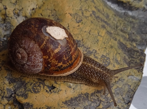 eben beim saubermachen habe ich gemerkt das eine meiner Cornu aspersum weiße Stellen auf dem Haus hat. Das ist aufjedenfall noch nicht lange so. Letzte Woche war es jedenfalls noch nicht da.