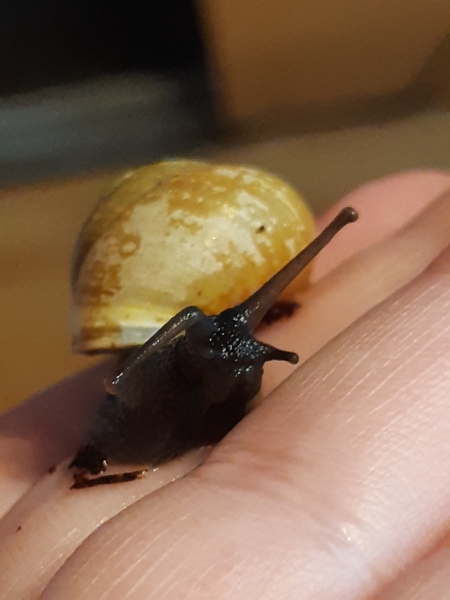 Das ist Hatty. Er lebt nun schon seit einem Jahr bei mir und war vorher ein illegaler Untermieter in einem Garten (lach). Ich weiß nicht wie alt er ist. Sein Haus sieht nicht gut aus, ich weiß, aber darum gehts nicht. Ich habe heute entdeckt, dass mein kleiner Hatty einen … "gebrochenen" Fühler hat? Falls das überhaupt geht?