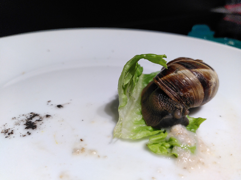 Außerdem einigermaßen neues Futter gab es diese Woche Radieschengrün. Das hat aber Schnecke 4 nicht bekommen, weil es das erst ab Montag gab und sie da auf jeden Fall noch geschlafen hat.