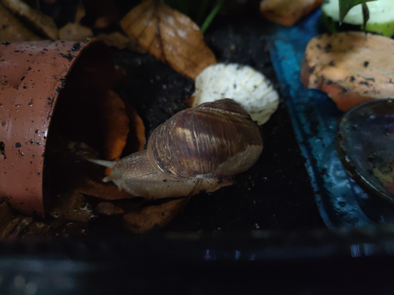 Ansonsten fallen mir nur noch die Schneckenmilben ein. Ich weiß, dass ich weiter welche im Terrarium habe und sie nicht loswerde, aber es ist auch kein starker Befall, denke ich. Ich sehe immer mal welche, aber dann auch wieder keine. Ich habe im Herbst neben der Behandlung gegen die Würmer auch mit Raid gesprüht, das hatte gar keinen Effekt.