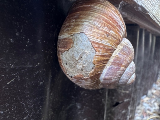 Letztes Jahr im Oktober haben wir einen Schrebergarten übernommen, zusammen mit sämtlichen Tieren, die diesen zu ihrem Lebensraum auserkoren hatten. Eines Tages kam uns „Weini“ entgegengekrochen. Immer wieder begegneten wir ihm und schlossen ihn ins Herz und informierten uns ein wenig im Internet über Weinbergschnecken. Anscheinend ist Weini ein Kämpfer, denn sein Gehäuse war in diesem Zustand: