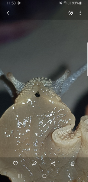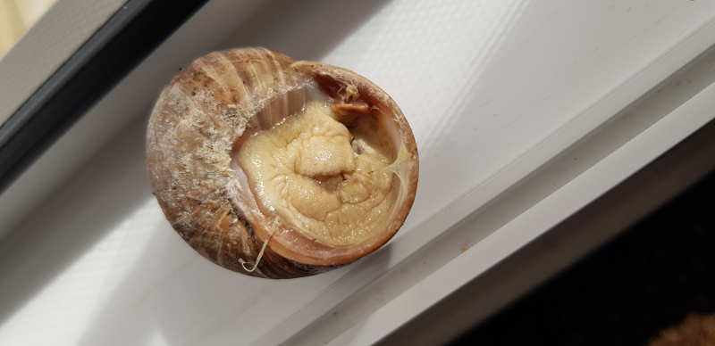Nun nach der Winterruhe sind fast alle Weinbergschnecken davon betroffen, dass sie nicht mehr richtig raspeln können. Der Mantel ist ebenfalls gelblich verfärbt.