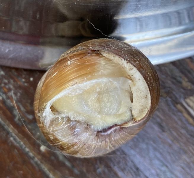 bitte um hilfe. diese weini war wohl angeklebt u ist abgefallen. ich nehme an, weil noch ein rest vom winterdeckel stört und sie ihren ausgang deshalb nur verschmälert anbaut. soll ich vorsichtig versuchen, den rest kleinstteilig weg zu machen - oder ist es schon zu spät dafür, weil sie schon verwachsen neu angebaut hat? habe hier kein terra, könnte ev. unter einem engmaschigen gitter im garten an ort und stelle halten, bis ihr mir antwortet. momentan ist sie noch zurückgezogen. eine manipulation wäre jetzt gerade günstig, falls ihr dies für sinnvoll haltet. vielen dank schon im voraus!