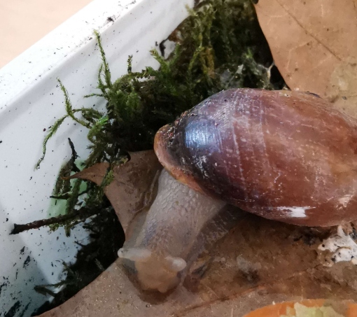 Ich habe die Schnecke in eine kleine Box mit Moos auf ein Blatt gelegt. Für den Fall, dass sie doch Kontakt mit einer schädlichen Substanz hatte, habe ich ihr ein Heilerdebad gemacht und sie etwa 2 Minuten drin liegen gehabt.