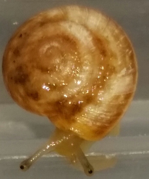 Ich halte sie noch immer auf feuchtem Zewa (wird täglich gewechselt und feucht gehalten) und biete weiterhin Obst, Gemüse und Sepiaschale (auch als Brei) an... aber irgendwie scheint die kleine Schnecke nicht zu wachsen und das Häuschen hat sich verfärbt. Es ist dunkler geworden und hat dunkle punkte bekommen, die sich leicht entfernen lassen.