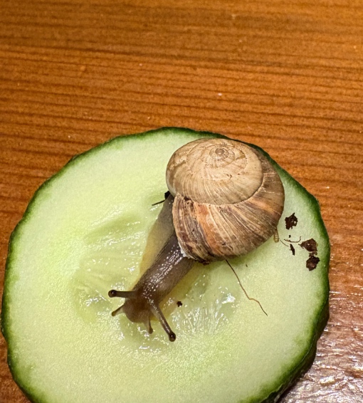 Ich habe nun schon lange damit gerechnet, dass Gerold-Bertram nach den diversen Trockenruhen nicht mehr aufwacht - aber gerade heute - schwupps - war er wieder da und hat Hunger wie eine Achatschnecke... Gurke ist nach wie vor sein absolutes Lieblingsessen... werde nun aber mal Sellerieblätter ausprobieren... auf die Idee bin ich nie gekommen