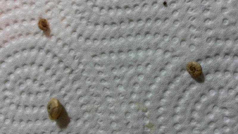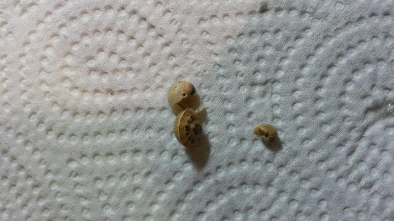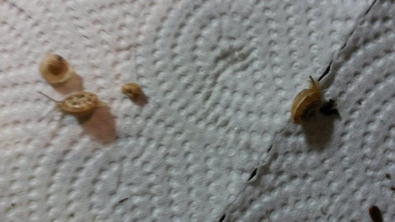 Ich hatte zwar die Erde gekalkt, aber vermutlich zu wenig. Ich habe jetzt nochmal nachgekalkt und getestet und bin bei PH 7. Außerdem biete ich jetzt 1x wöchentlich einen Kalkbrei an mit Heilerde. Seitdem sehen die Häuschen auch besser aus. Ich hab hierzu jetzt reines Calciumcarbonat im Internet bestellt https://www.amazon.de/dp/B00KB1HW4U/ref ... TE_3p_dp_1) und gebe wöchentlich 1 TL Kalk, 1 TL Babybrei milch-und zuckerfrei, 1/2 TL Heilerde und ein paar Gammarus. Es scheint ihnen sehr gut zu schmecken. Die Fotos habe ich alle auf dem Handy, sind aber leider jetzt dann auch nicht mehr aktuell und auch nicht sehr gut. Es sind auf jeden Fall 3 sehr große dabei, die anderen scheinen kleiner zu bleiben.