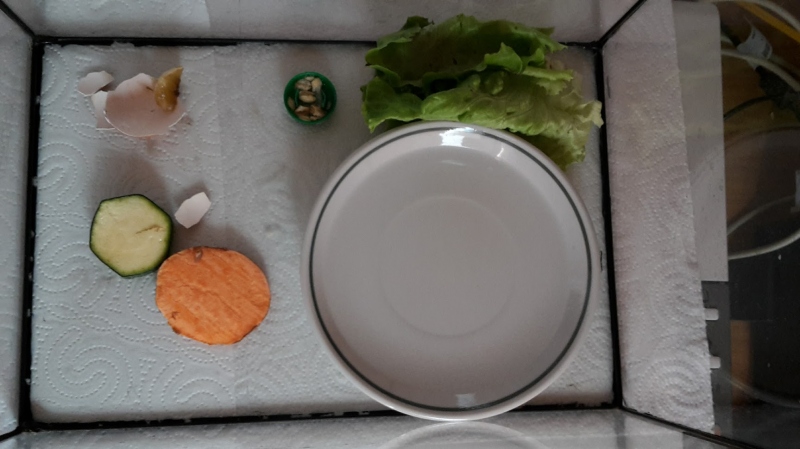 Jedenfalls frisst sie gut bis sehr gut, an manchen Tagen vielleicht sogar zu gut? An manchen Tagen sind ihre "Häufchen" so groß, dass sie kaum ins Schneckenhäuschen passen würden!