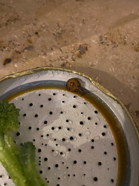 vor einem Tag habe ich in dem Spülbecken in der Küche eine kleine schnecke entdeckt, die wohl beim Salatwaschen hineingekommen ist. Ich habe ein großes gespültes Glas genommen und etwas Erde am Boden verteilt. Dann habe ich etwas Brokkoli und Feldsalat in das Glas getan und den Deckel mit vielen Löchern versehen. Leider isst die Schnecke nichts, soweit ich weiß. Das Glas steht im Esszimmer an einem Fenster, also normale Zimmertemperatur und viel Licht. Da sie tagsüber nicht viel macht, habe ich jetzt Nachts ein Bild gemacht. Sie klebt immer am Deckel oben. Weiss jemand zufällig welche Art das sein könnte und was diese Art gerne isst ?