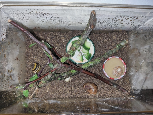 vor ein paar Tagen fand eine kleine Schnecke mittels Spinatexpress aus Italien den Weg zu uns. Sie heißt jetzt Fabio, habe ihr erstmal ein kleines Zuhause eingerichtet und sie mit Wasser, zerstoßenen Eierschalen, Gurke, Zucchini und getrockneten Wiesenkräutern (wobei sie die nicht mochte) versorgt. Könnt ihr mir vlt bei der Artenbestimmung helfen? Und mir noch Tipps geben? Freue mich schon auf eure Antworten. LG, Sonja