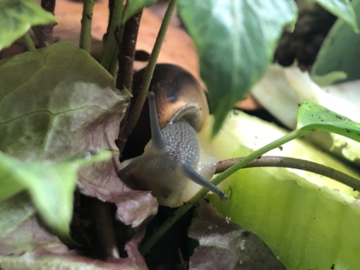 Diese kleine süße Schnecke ist mit dem Gemüse zusammen bei einer Bekannten von mir eingezogen.