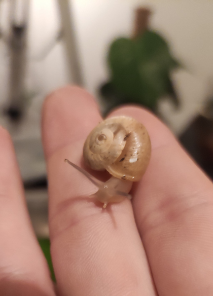 wir haben nun schon seit ein paar Monaten eine kleine Schnecke via Eisbergsalat (spanischer m.M.n.)