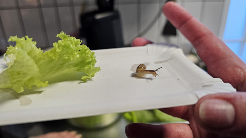 Als Miarbeiterin einer Bäckerei habe ich beim Waschen des Salates Heinzi gefunden. Eine kleine Mini-Schnecke, von der ich nicht viel weiß, weil ich mich mit Schnecken noch nie beschäftigt hatte. BIS JETZT