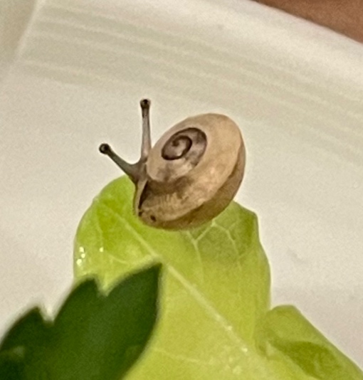 am 29.01. fiel mir eine kleine Schnecke aus der Petersilie (Spanien) entgegen.
