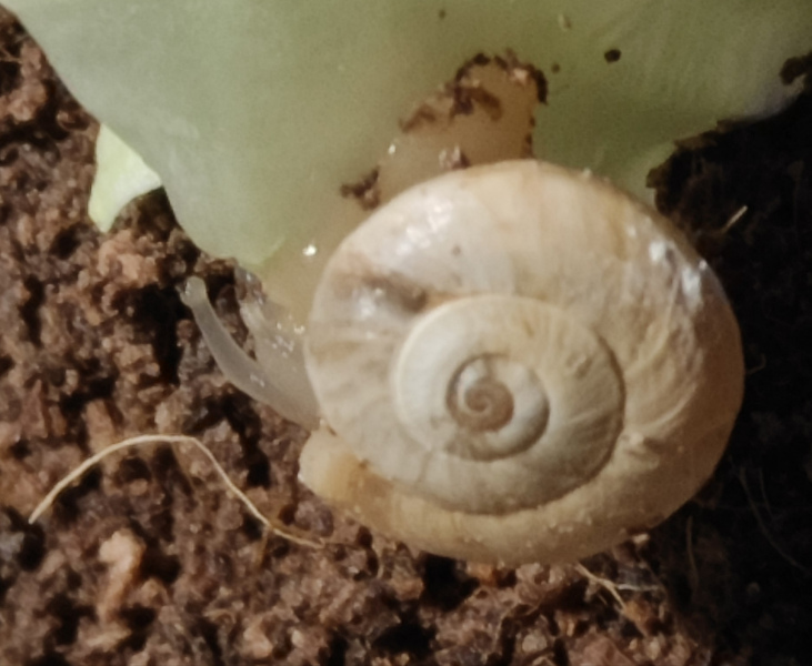 wir haben nun schon seit ein paar Monaten eine kleine Schnecke via Eisbergsalat (spanischer m.M.n.)