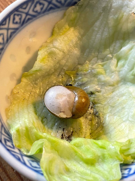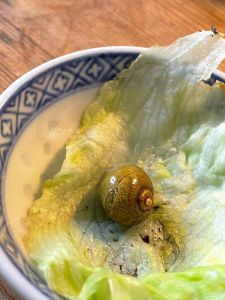 Woher der Salat kam wissen wir leider nicht mehr. Er war anfangs nur ein paar Millimeter groß, mittlerweile hat er ... naja... "normale Schneckengröße" würde ich es nennen.