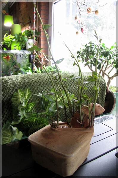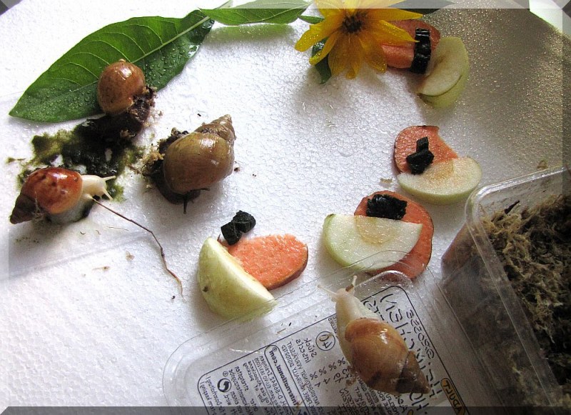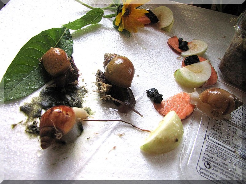 Ab und an kommt Laub aus dem Wald dazu und Äste mit Flechten die ich für einige Stunden in die Sonne liege damit das Getiers Zeit hat zu verschwinden. Ich habe nämlich auch Bedenken wegen den Glanzschnecken. Seit Mittwoch bewohnt außer den Schnecken noch vorübergehend ein Weberknecht das Terraium, der sich um die dämlichen Trauermücken kümmern soll, die ich durch irgendwelches Obst eingeschleppt habe.