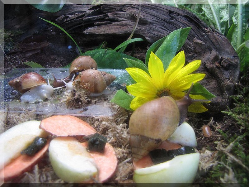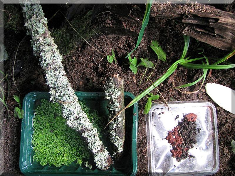 Jetzt habe ich die Terrarienerde bewusst mit unbehandelter Walderde gemischt um das Ökosystem im Terraium zu fördern. Ich denke das es meinem Boden tatsächlich gut getan hat - die Luftfeuchte hält sich besser, der Schneckenkot wird direkt beseitigt (ich muss kaum was heraussammeln), die Schneckies graben sich gerne ein und ich sehe sie öfter des Nachts verkuschelt rumliegen (Eiersuche vorprogrammiert). Meinen weißen Asseln hat es bislang auch nicht geschadet. Ich habe auch das Gefühl das der Waldboden die Terrrarienerde auflockert. Die Terrarienerde ist von von vornherein eher etwas Feuchter gewesen und klebte sehr. Das soll jetzt nicht heißen das mein Boden nun total trocken wäre, er ist feucht hat aber auch ein paar trockenere Zonen, die den Bewohnern innerhalb der Erde Sauerstoff verschaffen.