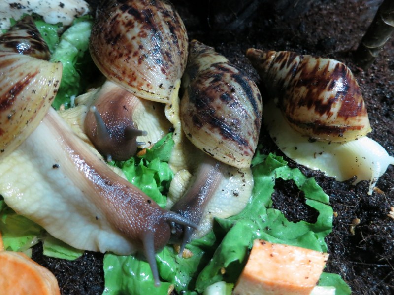 Haltungsparameter sind: Temperatur tags 25-26°C, nachts um die 20-22°, LF tags 75% nachts steigts auf über 80% - 85% an. Fütterung abwechslungsreich: Gemüse, Salat, Pilze, (bisher auch Grün von draußen: Bohnenblätter, Kürbisblätter, Kartoffelblätter, was ich so im Garten hatte, allerdings jetzt aufgrund der Witterung dvon nix mehr) gelegentlch mal ein Stück Banane oder Apfel. Sepiaschale haben sie immer mehrere im Terrarium. Einmal wöchentlich gibts Gammarus.