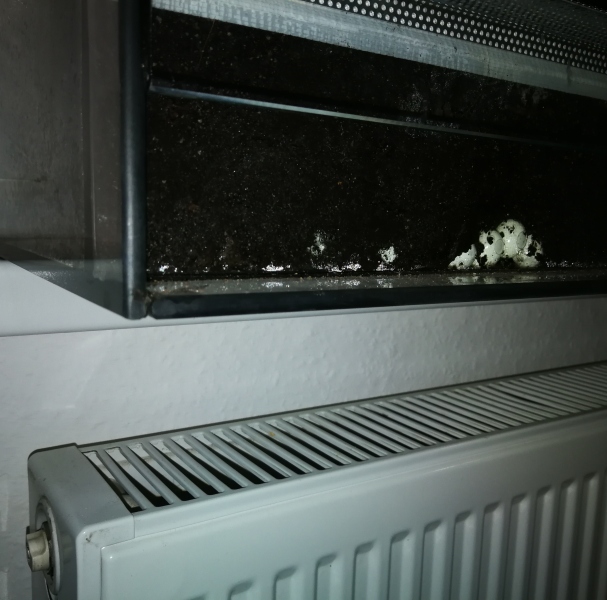 Das Terrarium steht ein Stück über der Heizung..offensichtlich der optimale Legeplatz..und für mich perfekt zu beobachten