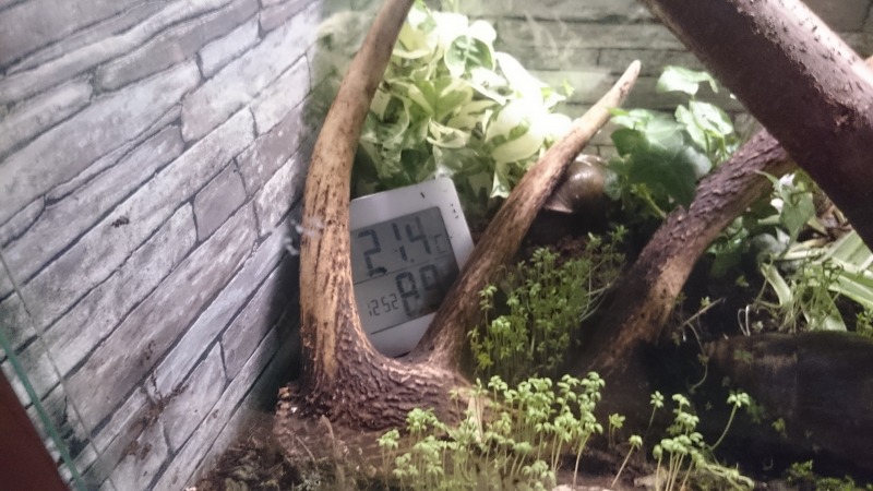 Danke für die Antwort Ja. Hab mein manuelles erst kürzlich gegen ein neues digitales getauscht weil es besser ablesbar ist. Und beide zeigen den gleichen wert. Liegt wohl auch daran das ich jetzt viele Pflanzen, Moos und ne Badeschale drin hab. Auch die auf das gesamte Substrat gesähte Kresse kommt bei den Stilaugen sehr gut an.