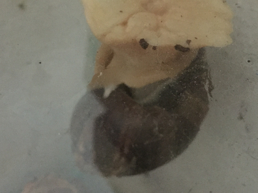 Ich habe mir auch schon überlegt, ob sie vielleicht irgendwo hängen geblieben ist und so sich ein Stück von dem Gehäuse weggerissen hat? Oder hat es etwas mit den beiden Muskel zu tun? An einem Tag hing ihr Gehäuse ganz schlapp herunter, aber das hat sich wieder erholt und sie zieht es wieder nach und trägt es auch wieder normal auf ihrem Rücken. Ich hab ihr aufgrunddessen etwas mehr Gammarus als Proteinquelle zur Verfügung gestellt, falls mit den Muskeln etwas nicht in Ordnung war oder noch ist?