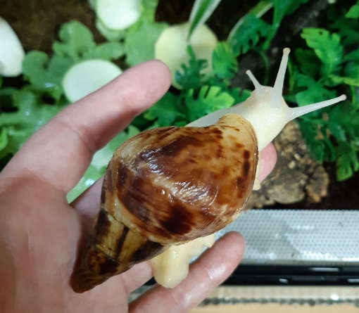 Ich habe drei Achatina Reticulatas. Zeus, Odin und Hera. Ich habe sie vor ca. 10 Wochen bekommen. Seit dem sind sie gut und schnell gewachsen. Mein Sorgenkind ist Zeus. Er knabbert ständig an seinem Häuschen. Beim letzten wiegen, wog er 31g. Hat folglich in einer Woche ziemlich genau 1g zugelegt. Er hat auch keinen Wachstumsrand mehr.