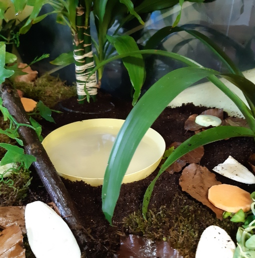 Meine Schneckchen Leben in einem 100x50x50 Terrarium mit aufgekalktem Kokoshumusboden. Luftfeuchtig liegt immer zwischen 80 und 90%. Ich sprühe morgens und abends. Temperatur liegt bei zwischen 25 und 26° Grad. Mit zwei Heizmatte. Es liegen immer mindestens 3 Sepiaschale drin. Die auch eigentlich immer kräftig beknabbert werden. Ob jetzt auch Zeus dabei war weiß ich nicht. Gesehen habe ich ihn noch nicht bei den Sepiaschale. Ich habe ins Terrarium zwei Schalen gestellt beide mit Wasser, in der einen Futterkalk in der anderen Seemandelbaumblätter. Ich habe Zeus einmal in der Kalkbad gesehen.