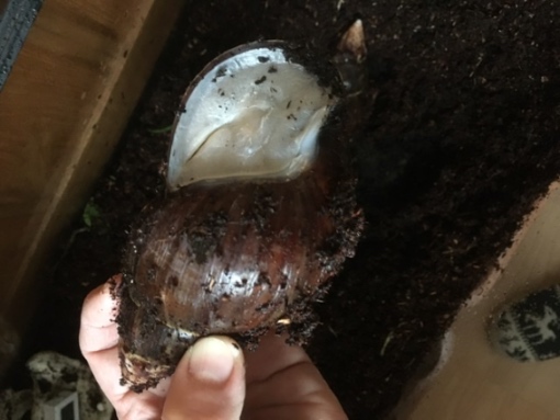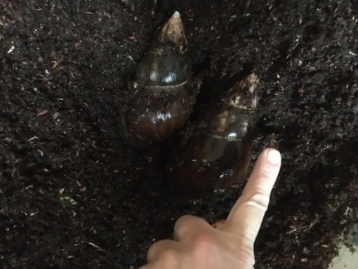 wir haben gestern aufgrund der schlecht gewährleisteten Versorgung, ein Gehege mit zwei Riesenschnecken , aus der Schule übernommen.