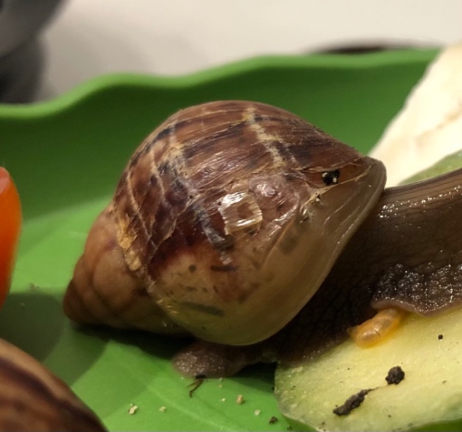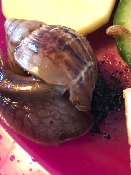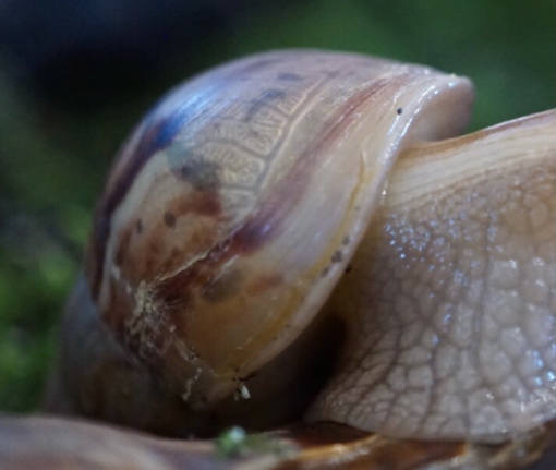 . Ein richtig großes Stück. Und dann hat Max den Rand rechts und links der dann ziemlich blöd Abstand einfach abgebrochen indem er sich dagegen gedrückt hat. Ich hab mich gar nicht getraut in anzufassen und wusste aber auch gar nicht was ich machen soll. Jetzt hat er ein ziemlich rauen abgebrochenen Rand. Er hat sich jetzt wieder an einen Ast gehängt und ruht sich da aus. Sepia und essen liegt direkt neben ihm.