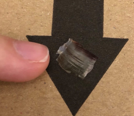 Hier noch ein Foto von dem Stück was als erstes abgebrochen ist. Als Größenordnung liegt mein kleiner Finger daneben.