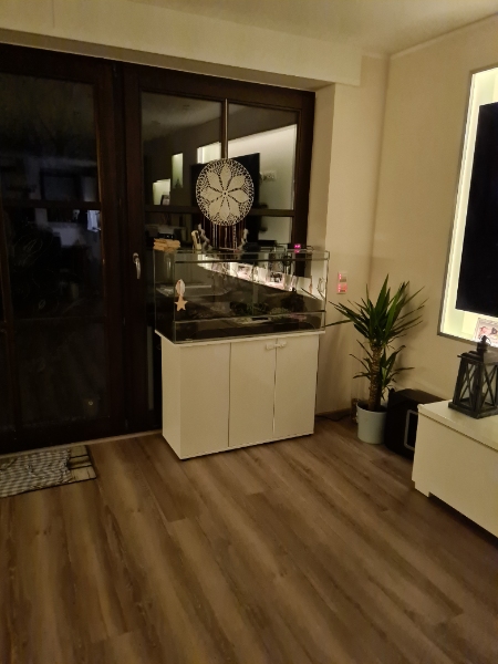 Im Wohnzimmer ist bei uns der beste Standort, weil ich finde es müsste schon ein Waschbecken in der Nähe sein und ich möchte auch immer reinschauen können und im Wohnzimmer halte ich mich abends meistens auf. Daran gibt es also nichts zu rütteln.