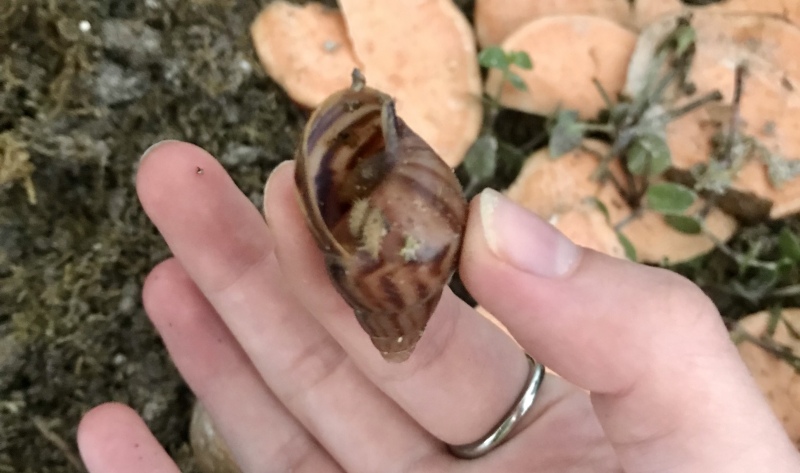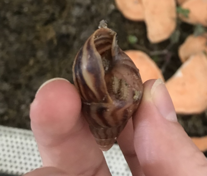 -Lissachatina Fulica, wildfarben, ca. 3 Monate alt, vor einem Monat auf schneckenpost gekauft