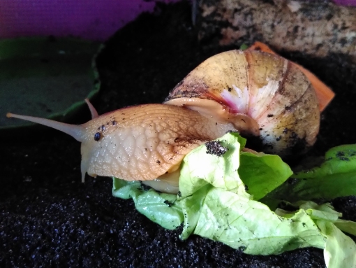 Problem zwei hängt auch mit der Nahrung zusammen, die beiden essen meiner Meinung nach nicht gerade viel. Wenn ich mir so Videos anschaue auf denen eine Achatschnecke locker eine ganze Gurkenscheibe verputzt und meine dann höchstens mal ein viertel davon isst mache ich mir schon etwas Sorgen. :/ Sollten Schnecken dieser Große nicht mehr Nahrung zu sich nehmen?