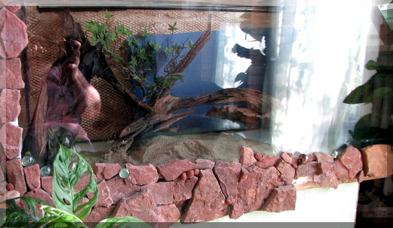 Ich plane 4 Moorkienwurzeln (schon sehr lange in meinem Besitz und durch den Einsatz in diversen Aquarien bereist gut "ausgewässert") als Strukturierung, Klettermöglichkeit und Versteck in die Landschaft zu integrieren.