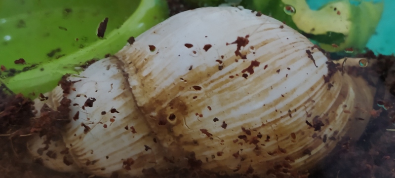 Das sieht auch wie eine Lissachatina fulica Vollalbino aus, aber sie sieht sehr krank und ungesund aus...