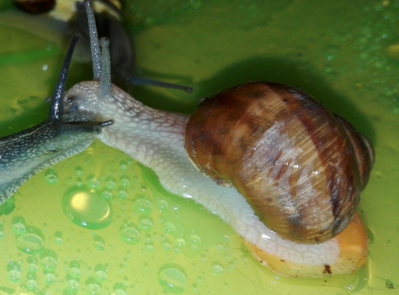 Mein Grosser der ja sehr verliebt ist in unsere Schneckis wollte ihn verarzten. Wir nahmen ihn mit.
