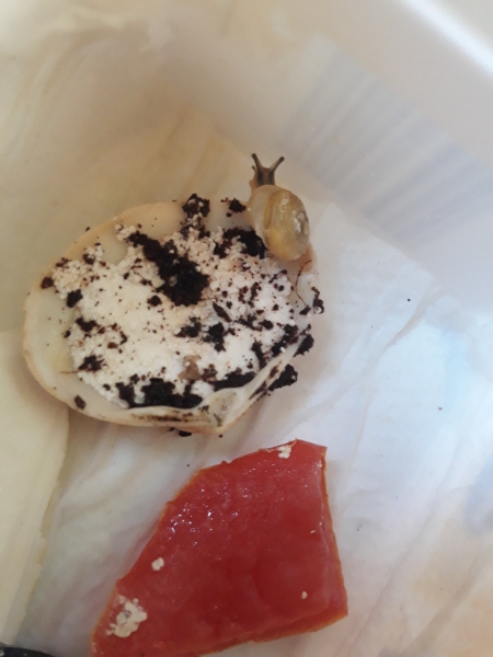 Die kleine hatte ihr Haus richtig gut repariert und sie hat auch immer schön am Essen und am Kalk geknabbert...Nun ja sie