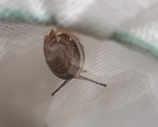 Ich habe heute eine kleine Schnecke (Häuschengröße knapp über 1cm) in meinem auf dem Wochenmarkt gekauften Puntarella gefunden. Ihr Haus war bereits angeknackst und als ich sie in ein Glas gesetzt habe, ist die ganze untere Windung abgefallen. :(