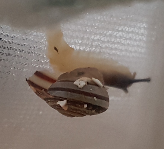 Es ist immer wieder erstaunlich, in welcher Schnelle die Schnecken ihr Gehäuse reparieren können.