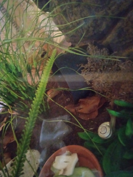 Ein paar der Bänderschnecken sind auch wieder abgetaucht und eine Cornu aspersum ist in den Winterschlaf gefallen. Ich mache heute wieder sauber und tue neue Äste rein dann kommen sie meistens wieder raus. Vielleicht liegt es auch an der Jahreszeit wir haben hier im Moment 2 Grad.